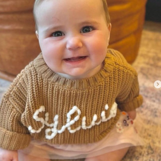 When my best friend was pregnant with her daughter, I wanted to get her a custom name sweater. However, after seeing the price tag, I thought, “Maybe I can just do this myself?” Having never picked up an embroidery needle, I promptly tracked down a local knitting club and attended one of their meetings. After that first meeting, I whipped up my first sweater, and the rest was history! I began making custom sweaters for friends and family, and soon people started asking me if I could teach them. Within a few months, I took a risk and hosted my first KnitNames Sip & Embroider event. The event sold out in just 1 week!